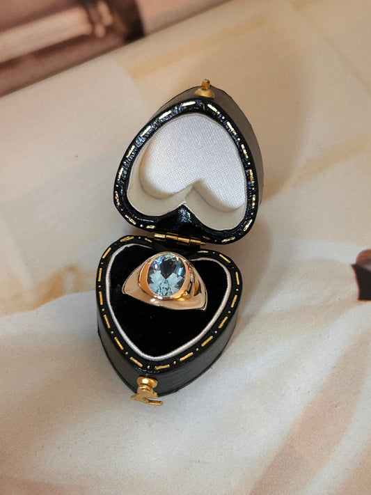 Vintage 9ct Gold Chunky Signet Blue Topaz Ring