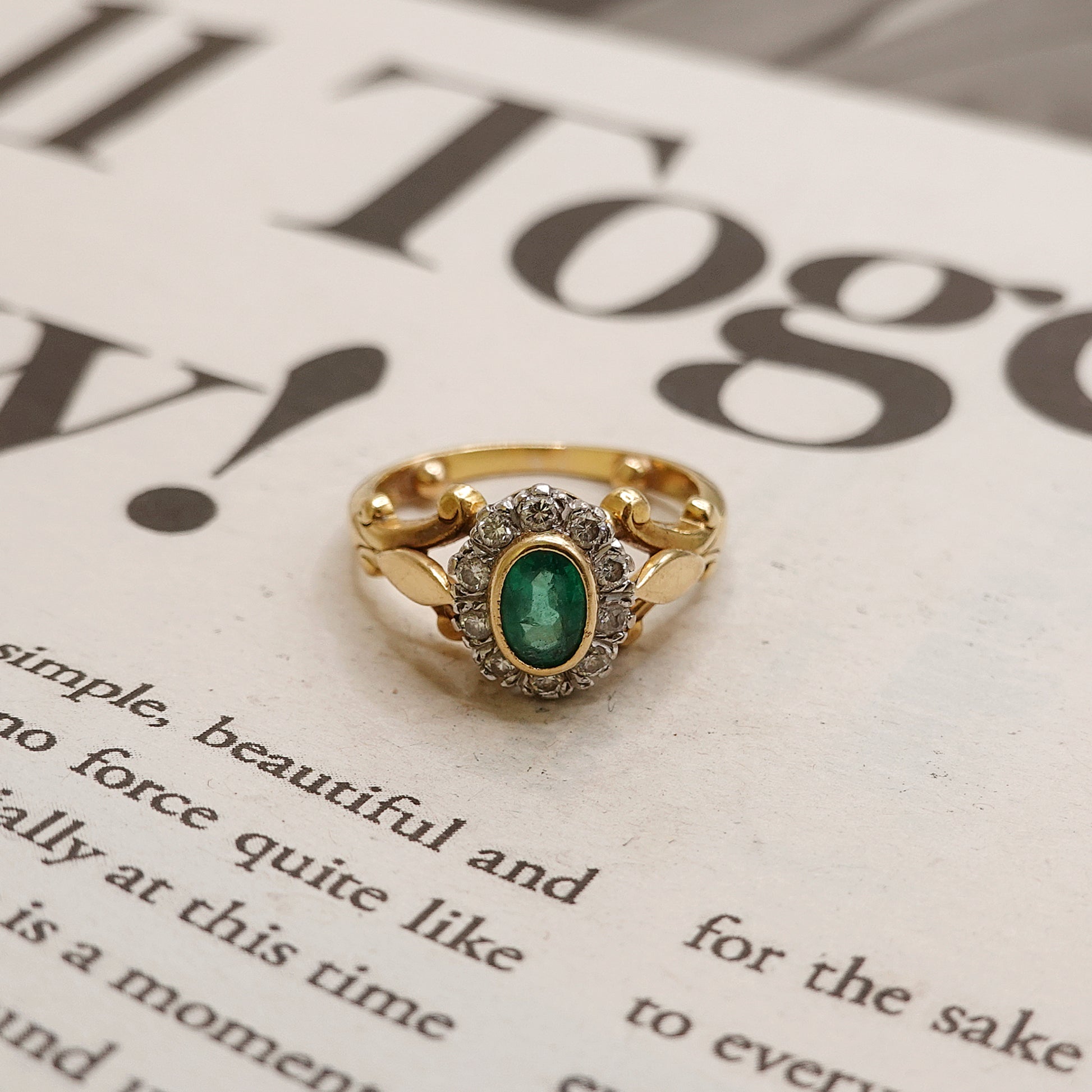 Description: A beautiful vintage emerald & diamond cluster ring set in 18k gold.